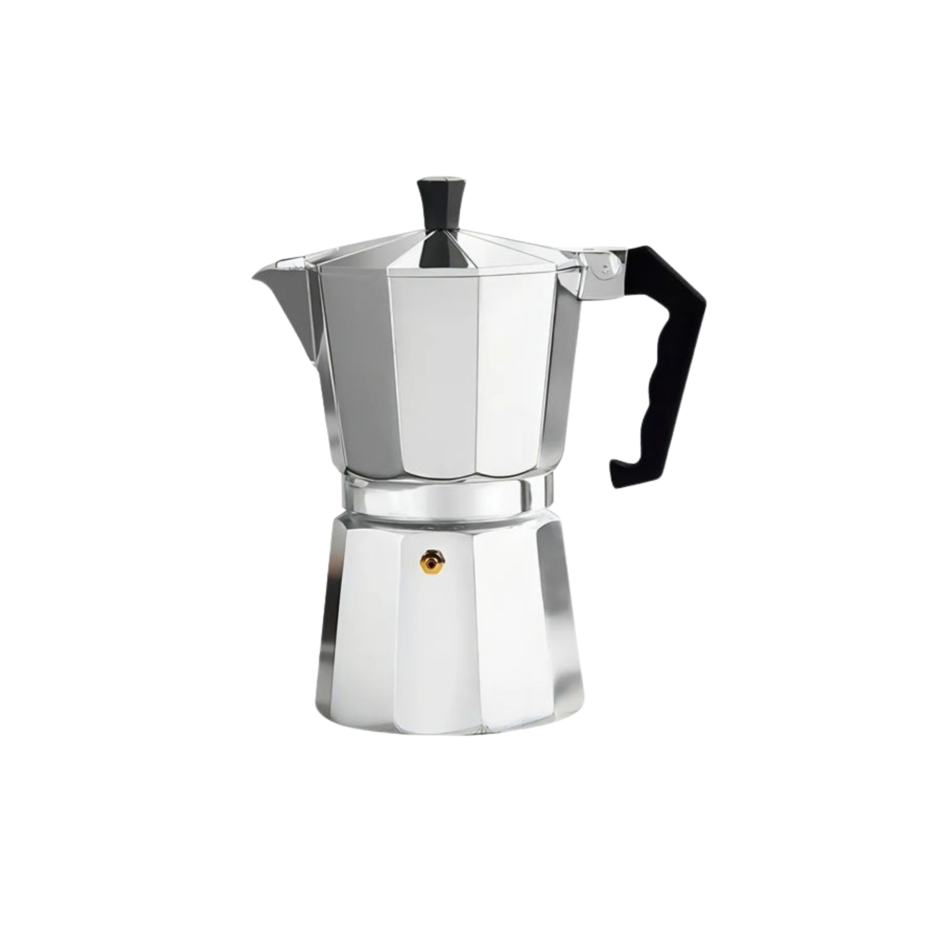 Cafetera italiana tipo moka, ideal para preparar un café intenso y aromático de forma tradicional. Fabricada en aluminio, con funcionamiento manual y diseño clásico para uso diario. Perfecta para compartir en casa u oficina.